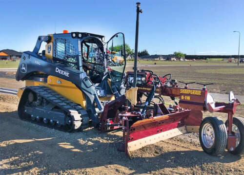 The SharpGrade Skid Steer Grader Blade enables you to accurately fine grade to within 1/8" (3mm). Using a SharpGrade Grader Blade is up to ten times faster than levelling using a skid steer with standard bucket attachment.